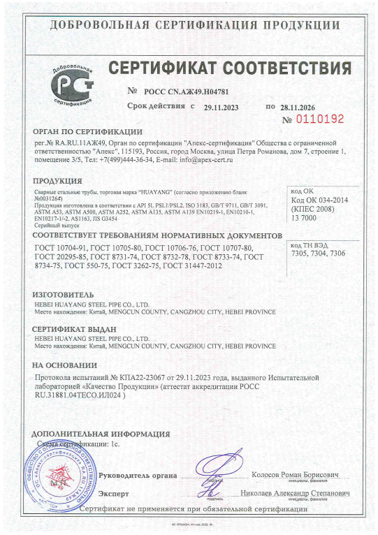 河北華洋鋼管有限公司公司創(chuàng)建于2005年,注冊資金5億元,公司占地面積1000余畝,固定資產12億元,年銷售收入近100億元,現有員工600余人。“華洋牌"高頻直焊鋼管被評為“河北省名牌產品”,年生產能力可達260萬噸,2024年河北華洋鋼管有限公司榮獲河北省百強民營企業(yè)(69位),河北省百強制造業(yè)(57位)榮譽稱號。